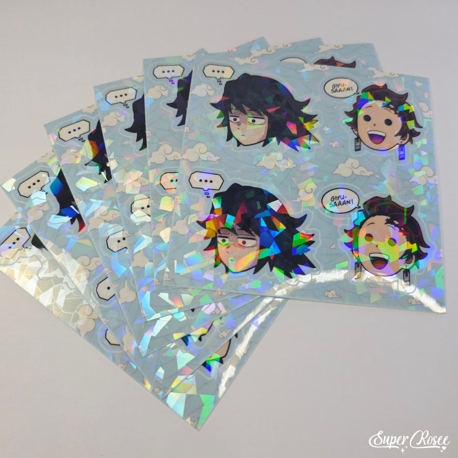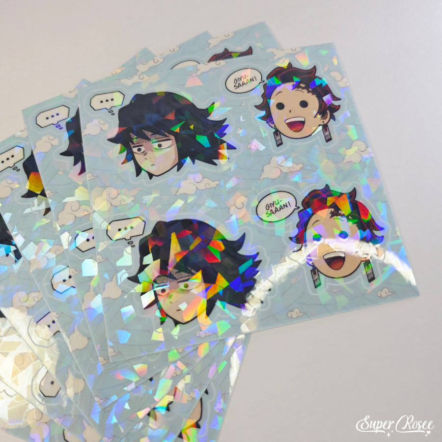 Sticker sheet includes 4 clear easy to peel mini die cut stickers, with a broken glass holographic laminate.