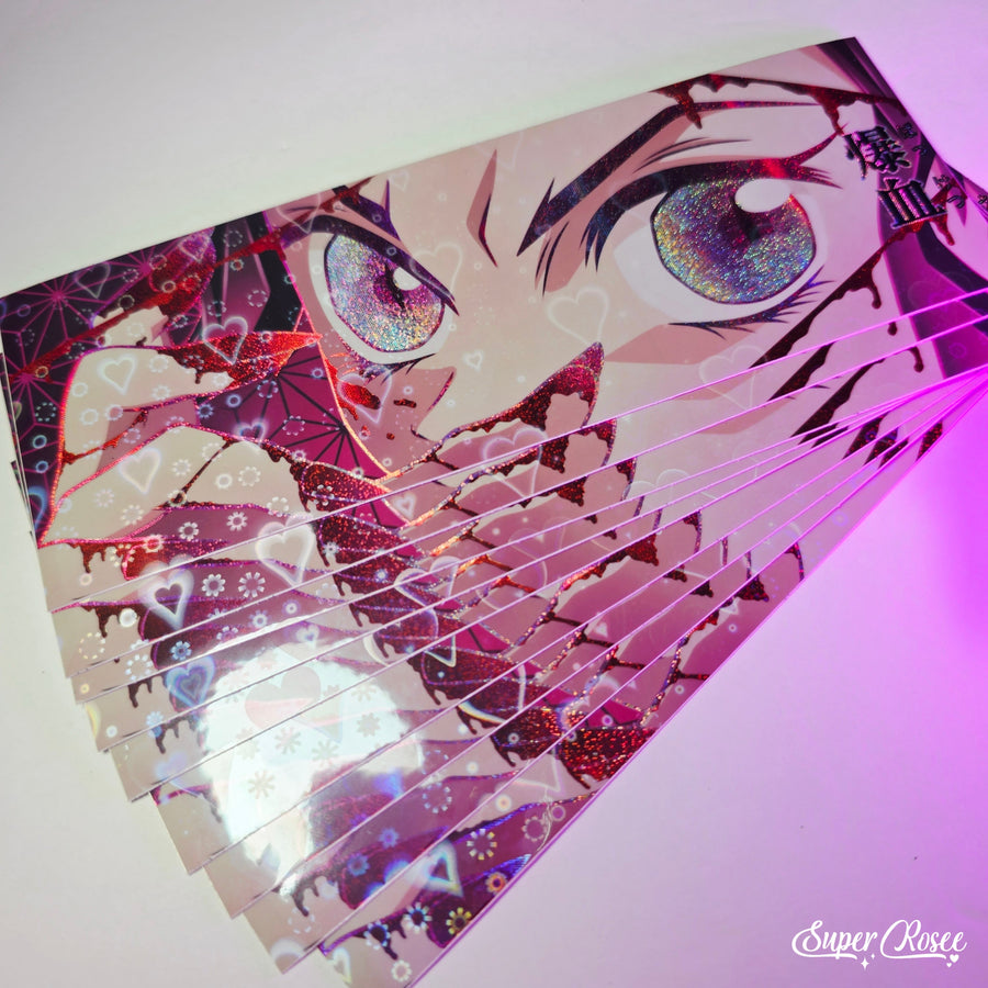 Large - 7 x 2.5 in - Partial Glitter with Heart Holographic laminate